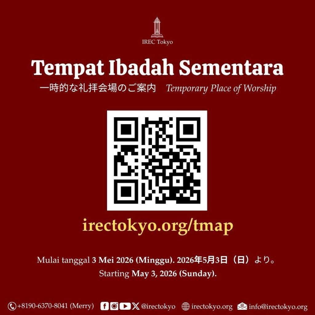 Ibadah tanggal 3 Mei 2026 hanya diadakan 1 kali, pukul 9:30 JST (Lokasi Gereja)